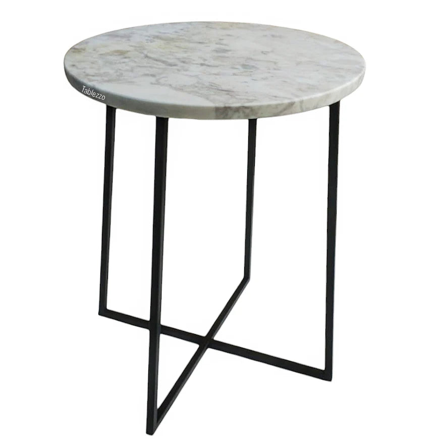 Tablero de mármol blanco con betas y estructura metálica con pintura al horno.